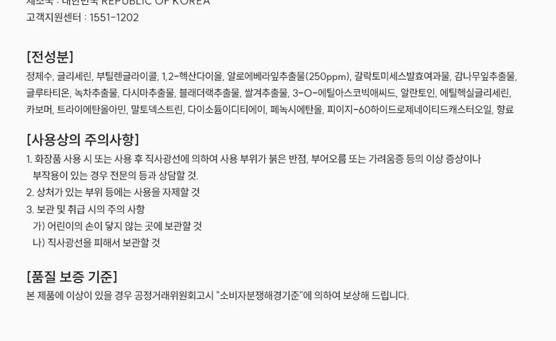 | 용량(중량) | 260ml | 제품 주요 사양 | 모든 피부용 |
