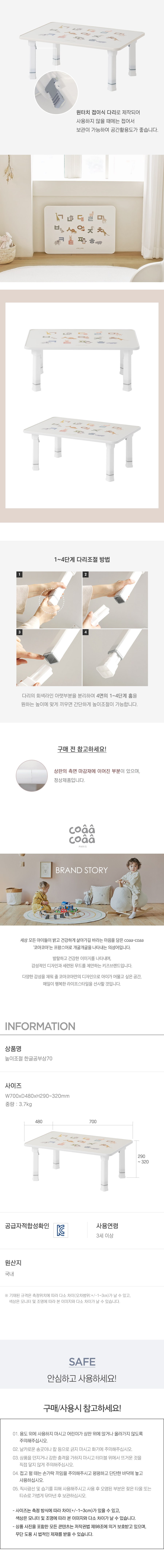 | 품명 및 모델명 | 코아코아 높이 조절 한글 공부상 | KC 인증정보 | 유/KC마크 |