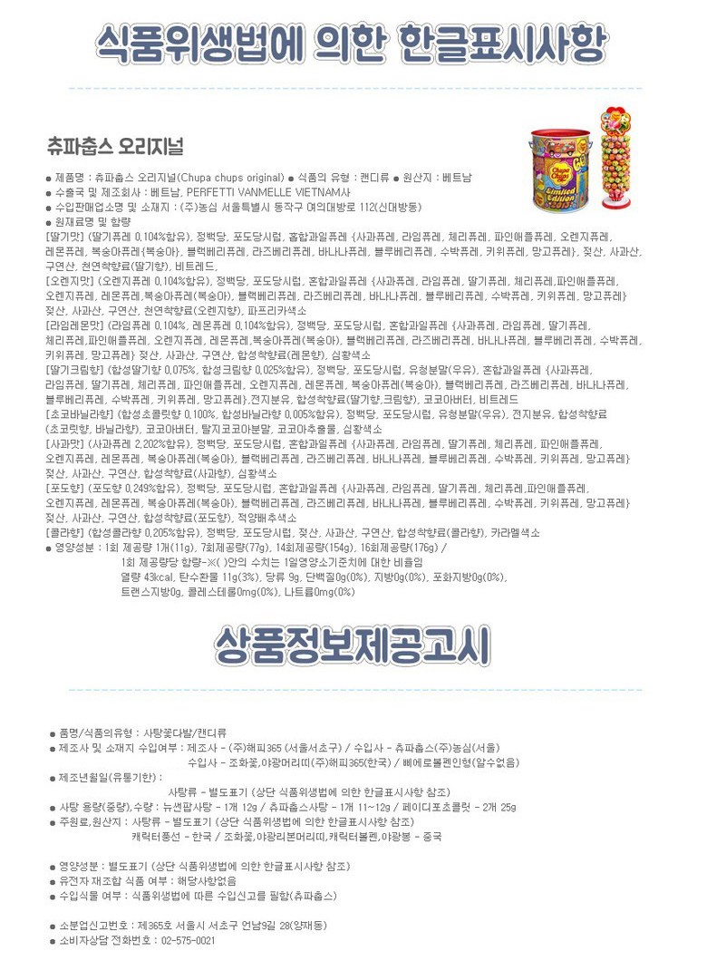 | 품명 및 모델명 | 사탕부케 | 인증/허가 사항 | 해당없음 |