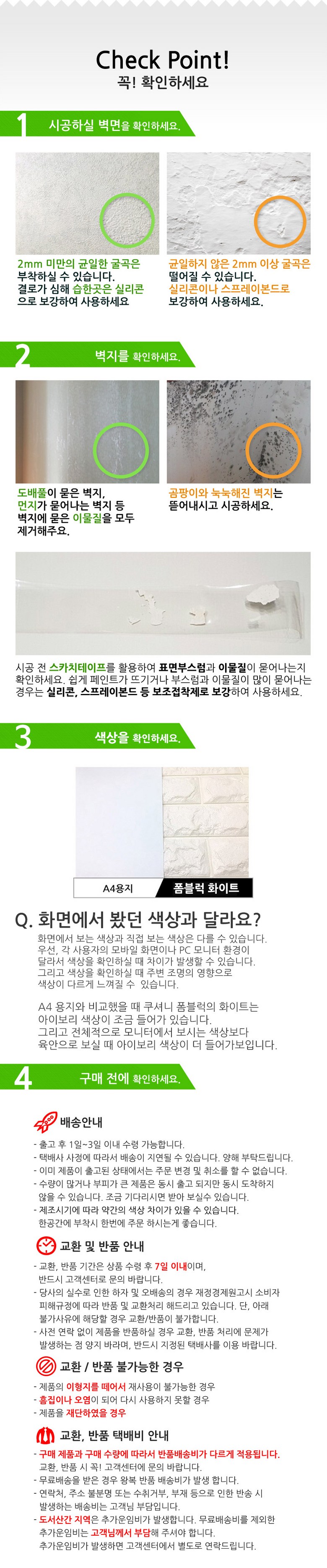 - ㆍ모니터 해상도의 차이로 인해 색상이나 이미지가 실제와 달라, 고객이 단순 변심으로 교환/반품을 무료로 요청하는 경우