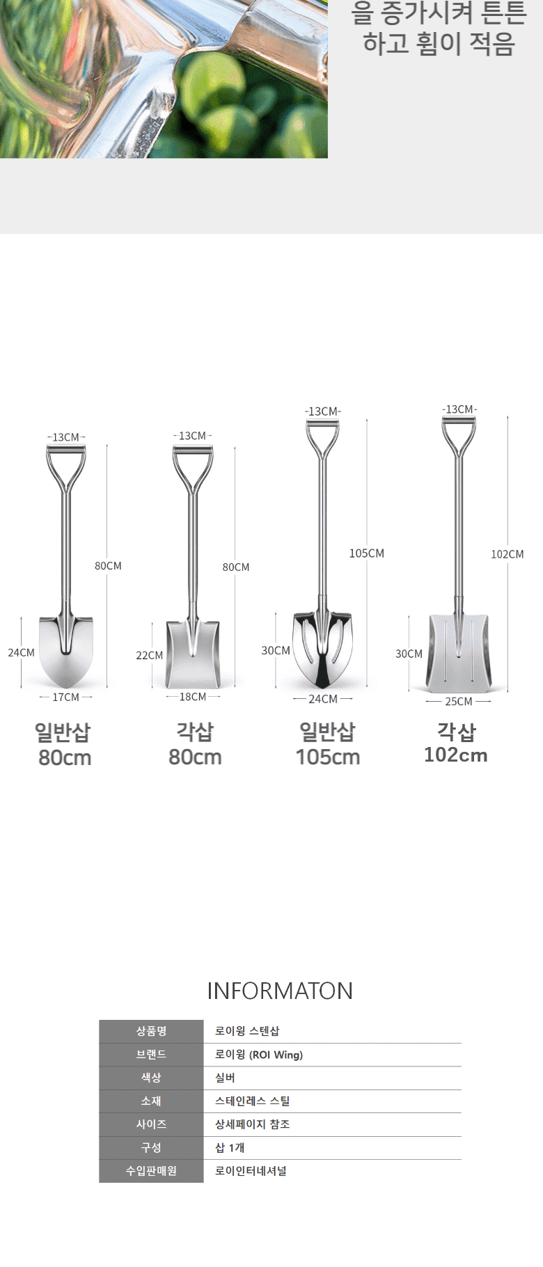 | 품명 및 모델명 | 올스텐 삽 | 인증/허가 사항 | 상품 상세설명 참조 |