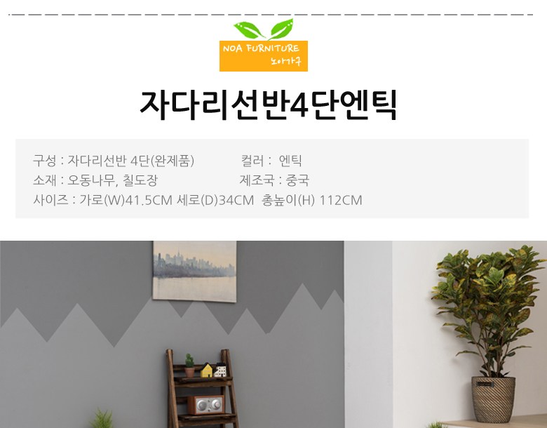 | 품명 | 자다리선반4단엔틱 | KC 인증정보 | 알수없음(업체미제공) |