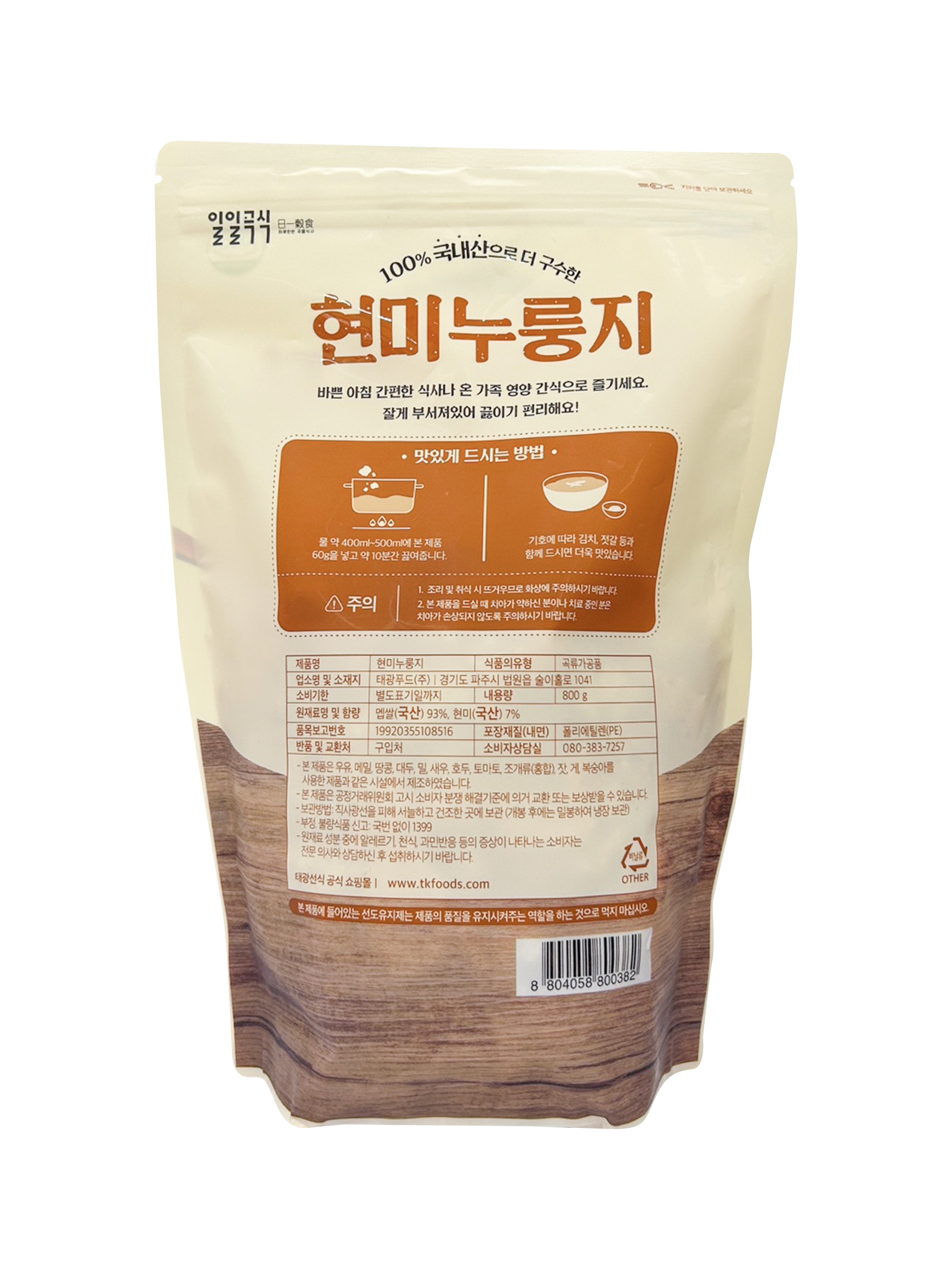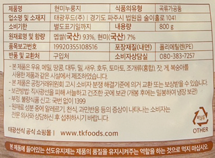 - 누룽지 포장형태: 봉지형