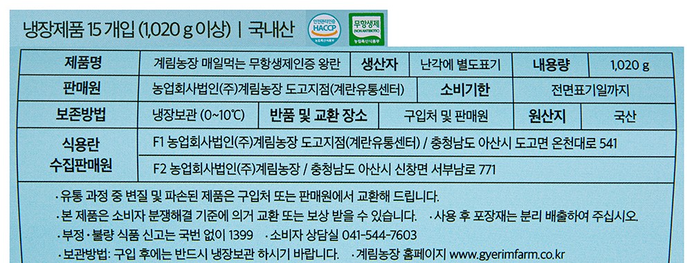 무항생제 인증 왕란