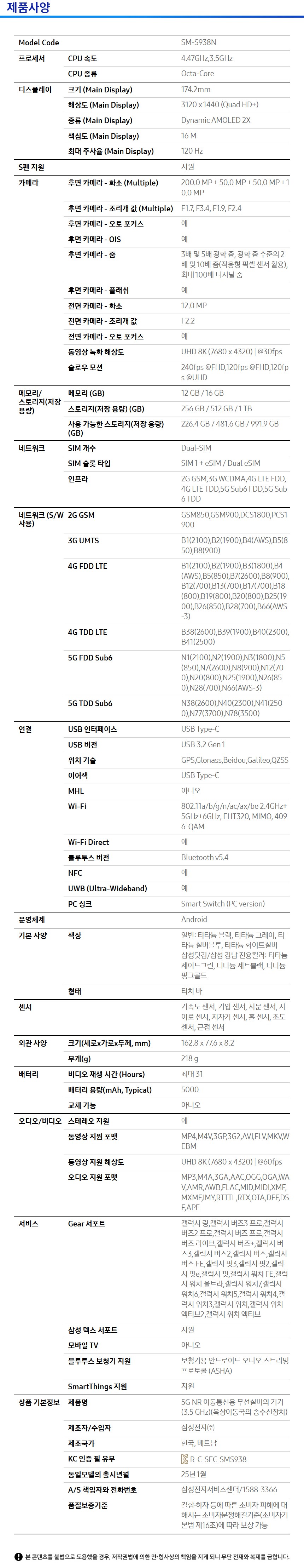 | 품명 및 모델명 | 삼성전자 갤럭시 S25 Ultra 자급제 SM-S938N 티타늄 실버 블루 512GB /SM-S938N | KC 인증정보 | 유/KC마크 , R-C-SEC-SMS938 |