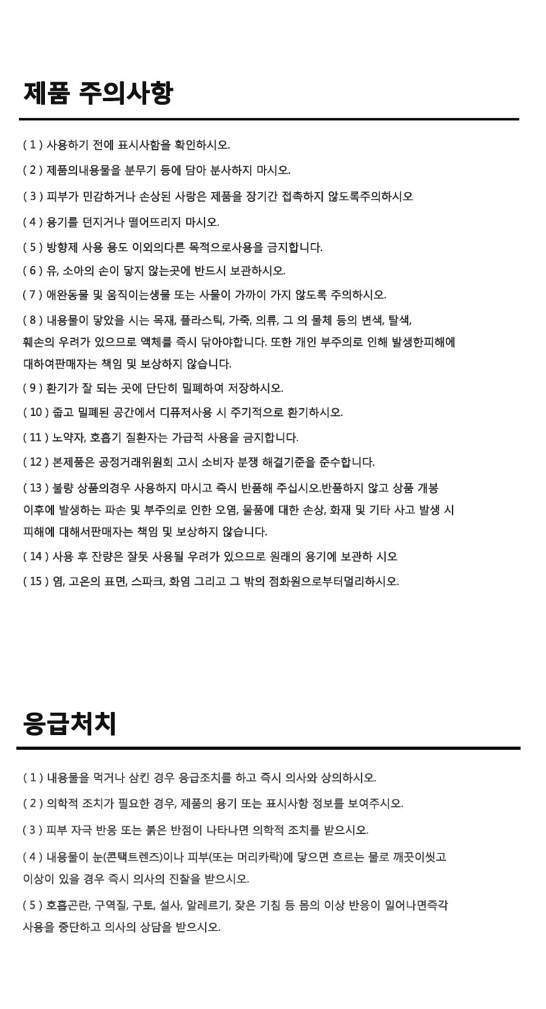 다만, 판매자의 제시사항이 관계법령보다 소비자에게 유리한 경우에는 판매자 제시사항이 적용됩니다.