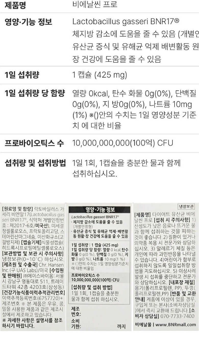 | 제품명 | 비에날씬 프로 BNR17 | 제조업소의 명칭과 소재지 | 상품 상세페이지 참조 |