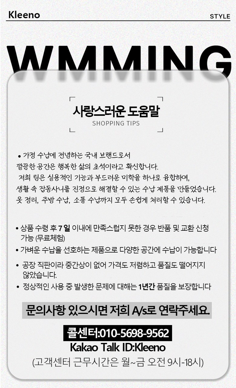 | 소비자상담 관련 전화번호 | A/s KakaoID:Kleeno A/s 핫라인: 010-5698-9562 | ||