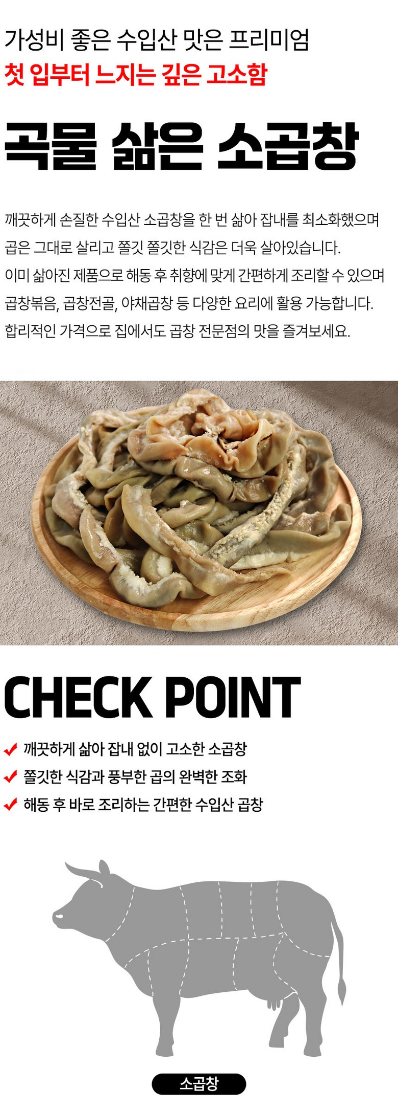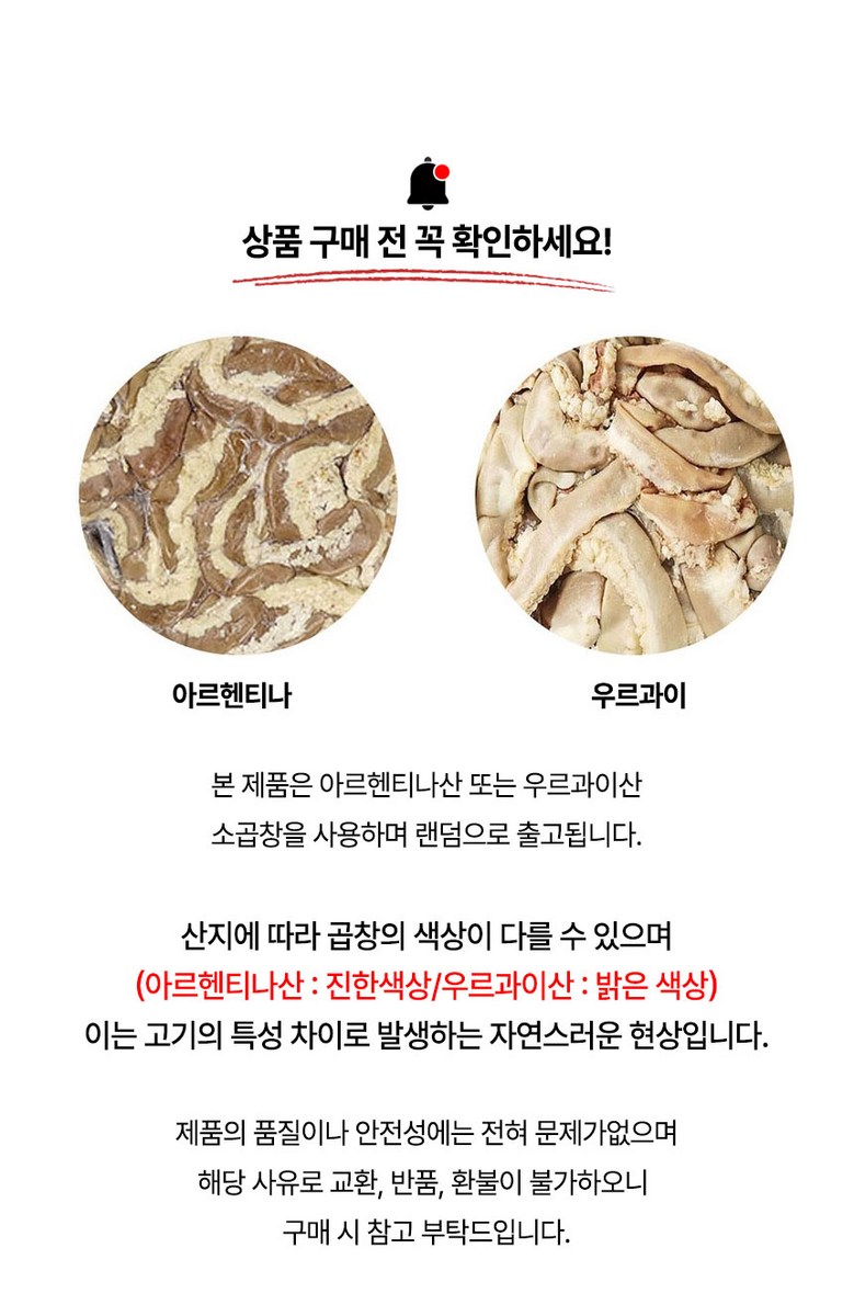 | 품목 또는 명칭 | 삶은 소곱창 소대창 | 포장단위별 내용물의 용량(중량),수량,크기 | 2kg |