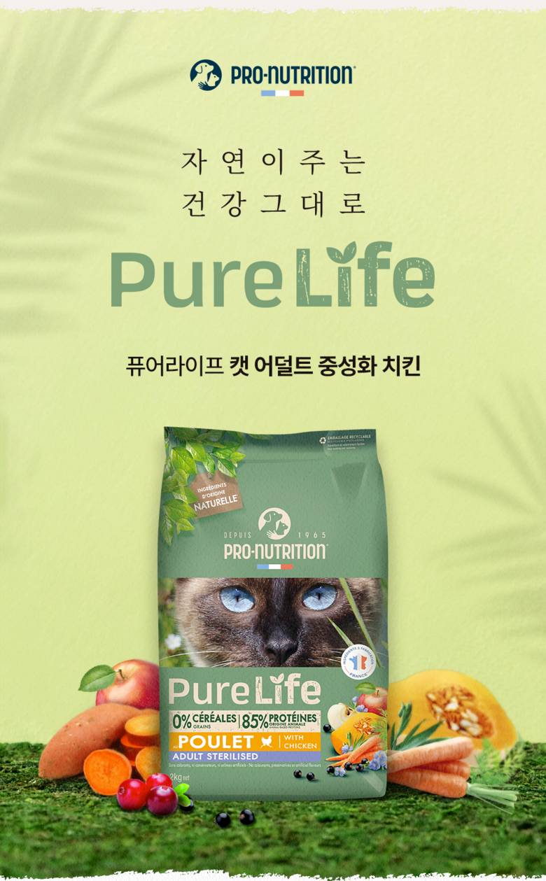| 품명 및 모델명 | 프로뉴트리션 퓨어라이프 캣 치킨 중성화 | 인증/허가 사항 | 상품 상세페이지 참조 |