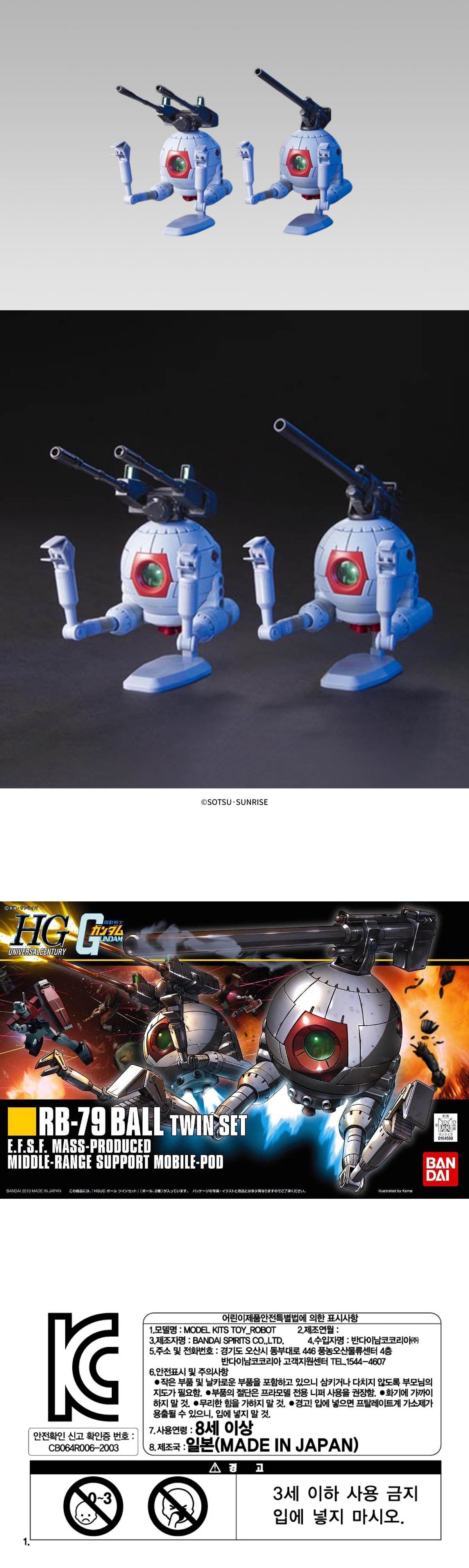 | 품명 및 모델명 | HGUC 볼 트윈 세트 / MODEL KITS TOY_ROBOT | KC 인증정보 | CB064R006-2003 |