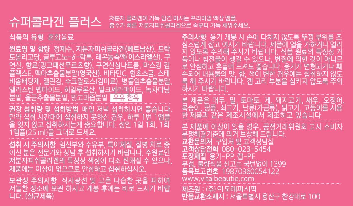 | 제품명 | 슈퍼콜라겐 플러스 | 식품의 유형 | 컨텐츠 참조 |