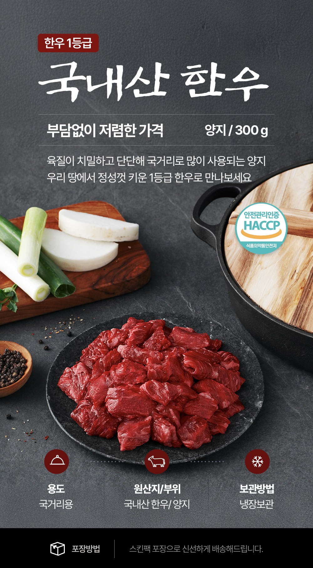 육질이 탄탄해, 국거리용으로 제격인 한우 양지예요. 요리하기 좋은 크기로 정형되어 있으니, 국물 요리에 쏙 넣어보세요. 푹 끓여내면 살코기가 딱 먹기 좋게 연해진답니다. 기름기가 적고 담백하면서, 한우의 육향이 살아있어 깊은 국물 맛까지 우려낼 수 있어요.