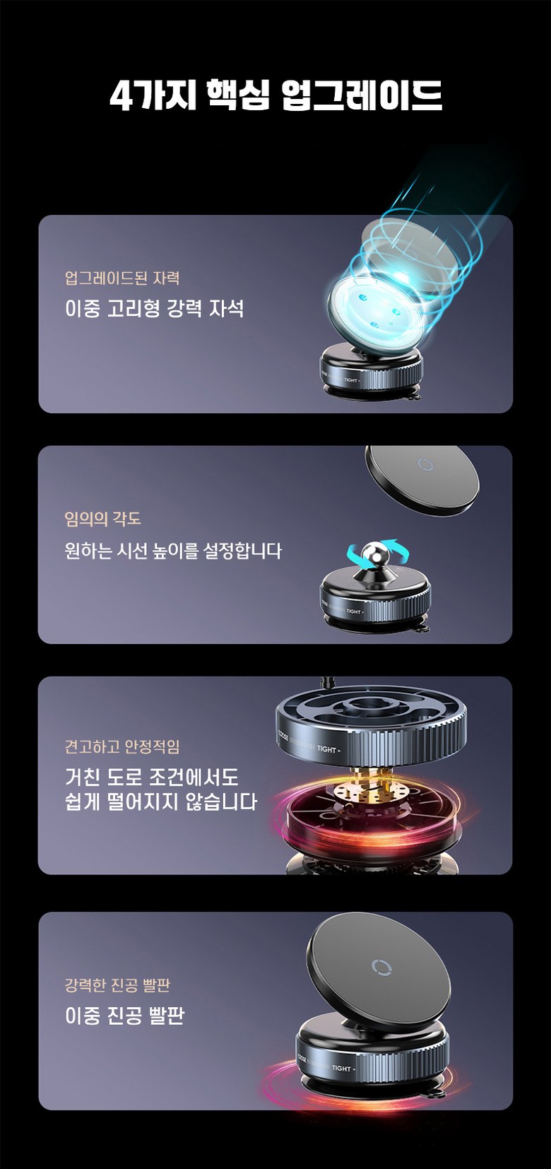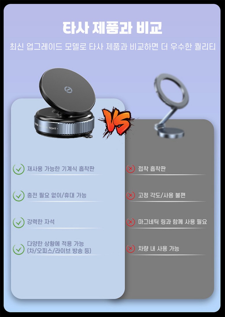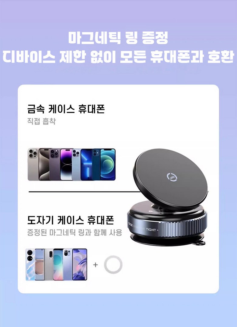 | 품명 및 모델명 | Allilio 진공 흡착식 차량용 핸드폰 거치대 360도 회전 마그네틱 휴대폰 거치대 | 인증/허가 사항 | 인증 필요 없는 제품입니다.구성품:휴대폰 거치대, 자석 링, 설명서 |