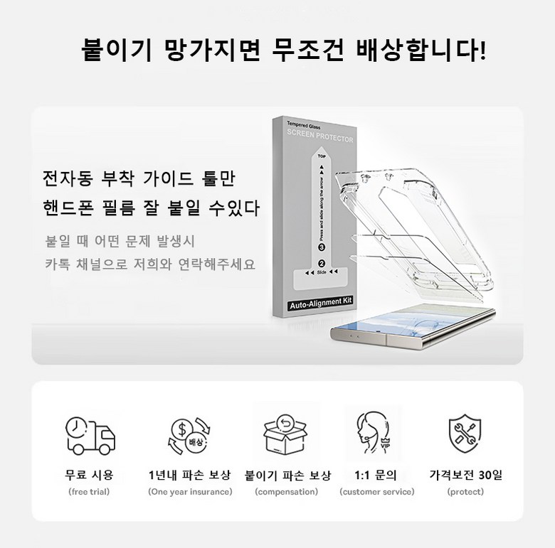 | 품명 및 모델명 | Gatatol 지문방지 강화유리 액정 보호필름 2매 + 카메라 보호필름 2매 풀세트 | 인증/허가 사항 | 이 제품은<전기용품 및 생활용품 안전관리법>에 따른 안전관리대상 제품임 |