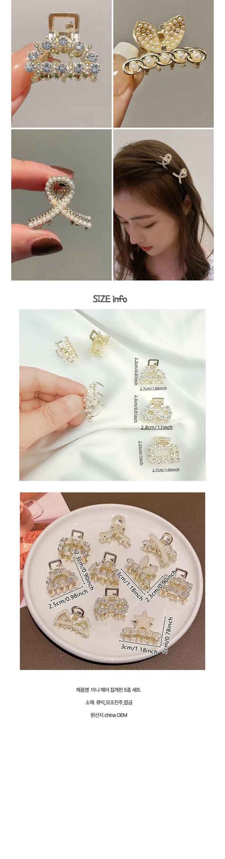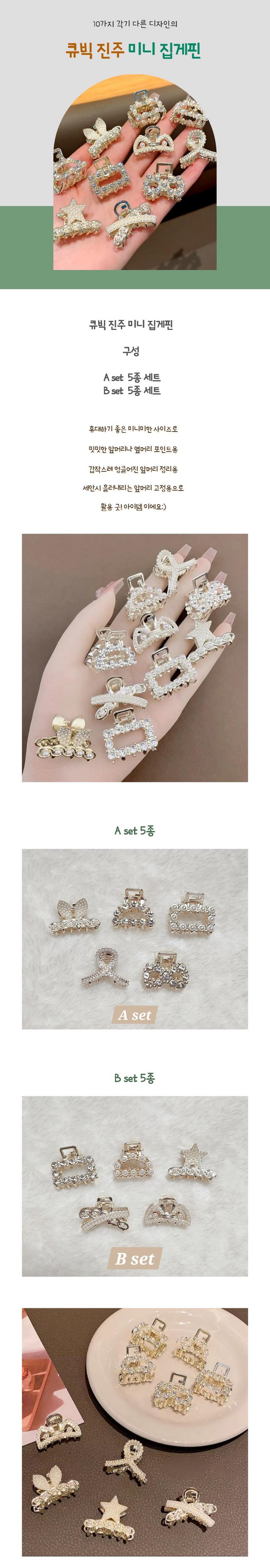 | 종류 | 미니 헤어 집게핀 | 소재 | 큐빅,진주,합금 |