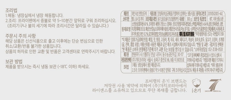 | 제품명 | 상품 상세페이지 참조 | 식품의 유형 | 상품 상세페이지 참조 |