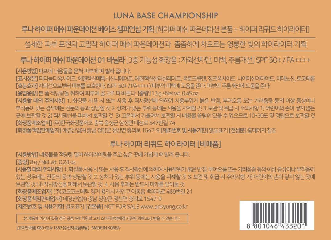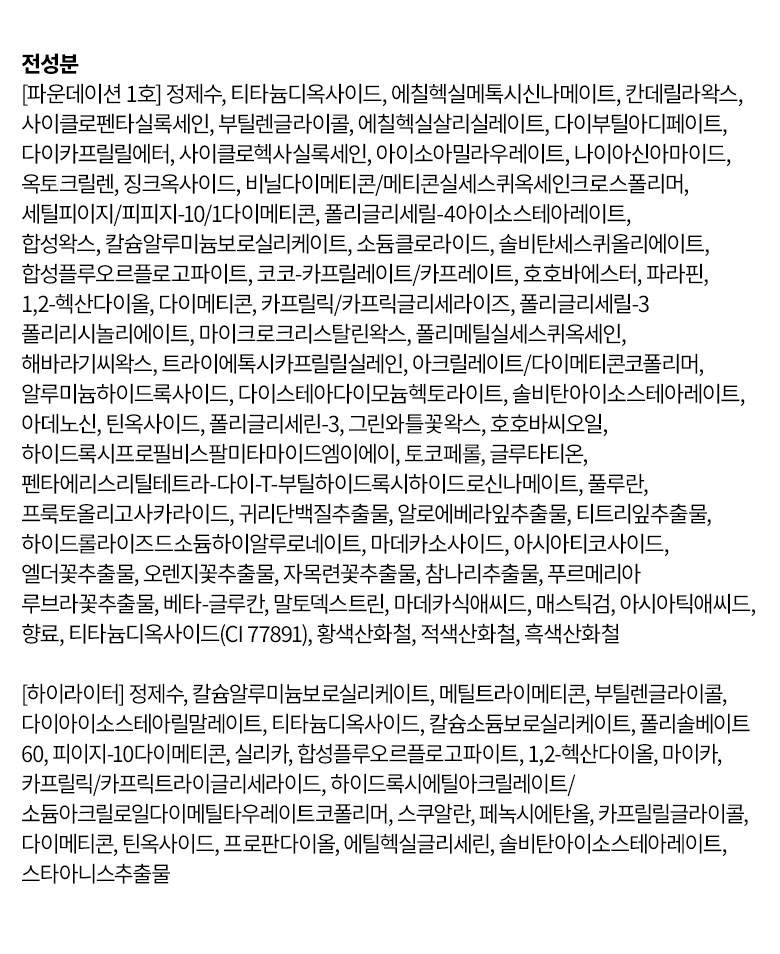 | 화장품제조업자, 화장품책임판매업자 및 맞춤형화장품판매업자 | 컨텐츠 참조 | 제조국 | 대한민국 |