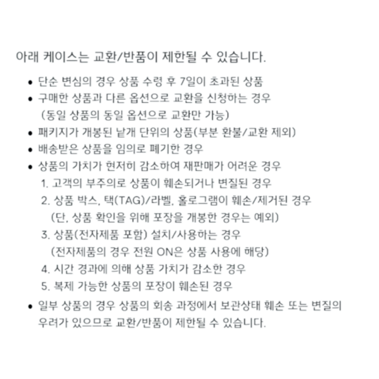 교환/반품 제한사항