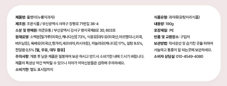 | 제품명 | 상품 상세페이지 참조 | 식품의 유형 | 상품 상세페이지 참조 |
