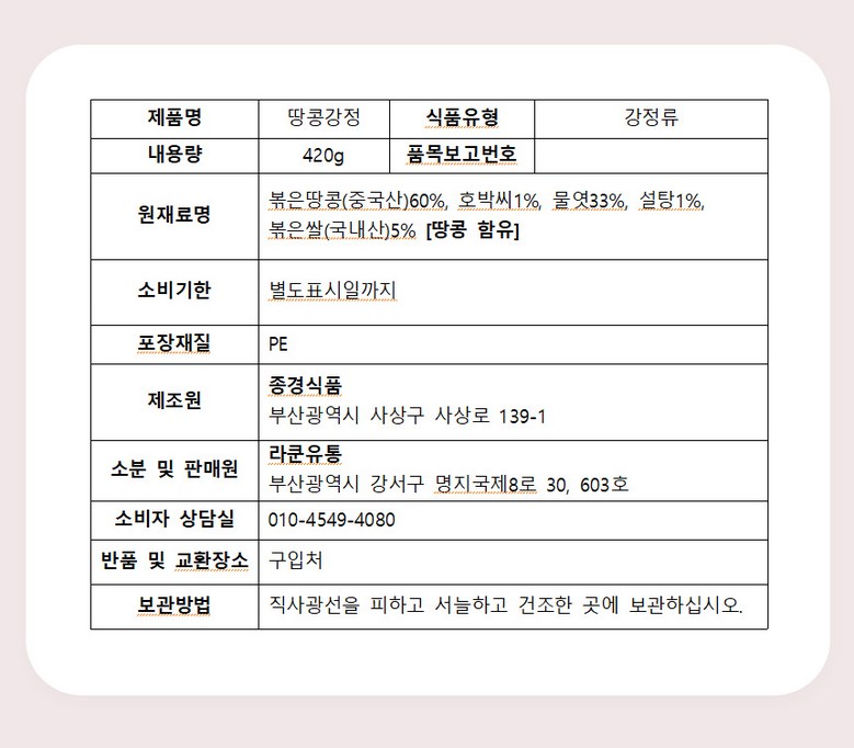 | 제품명 | 상품 상세페이지 참조 | 식품의 유형 | 상품 상세페이지 참조 |