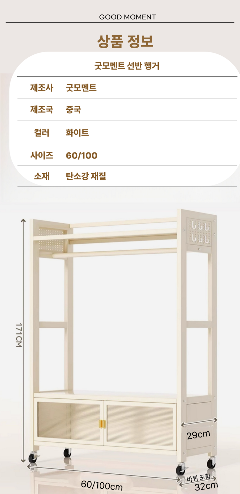 | 품명 | 굿모멘트 이동식 튼튼한 행거 | KC 인증정보 | 상품 상세페이지 참조 |