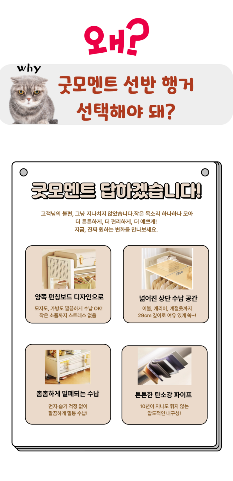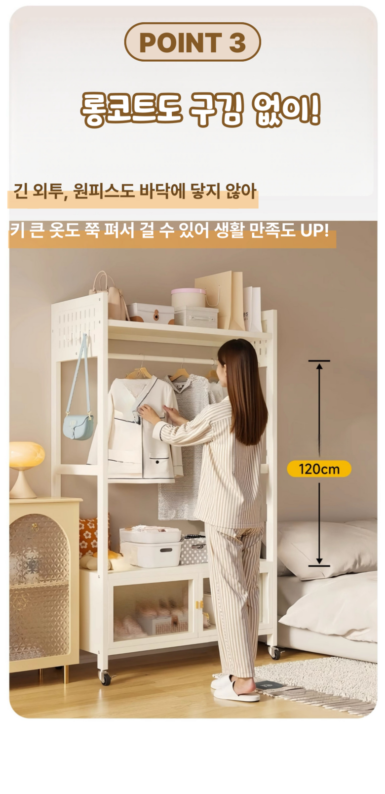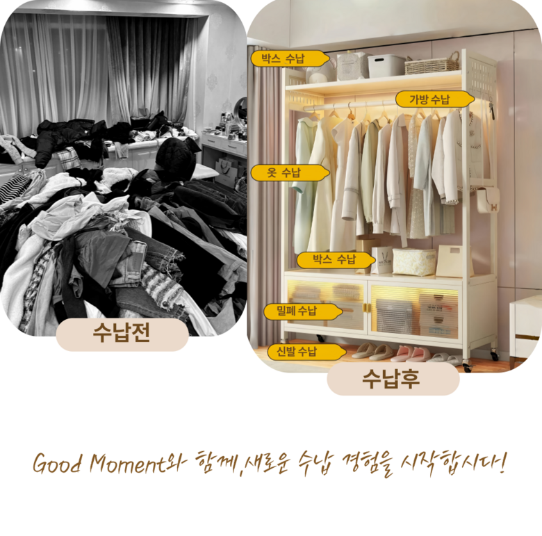 GOOD MOMENT 튼튼한 스탠드 바구니 먼지 방지 수납선반이 있는 시스템 조립식 행거