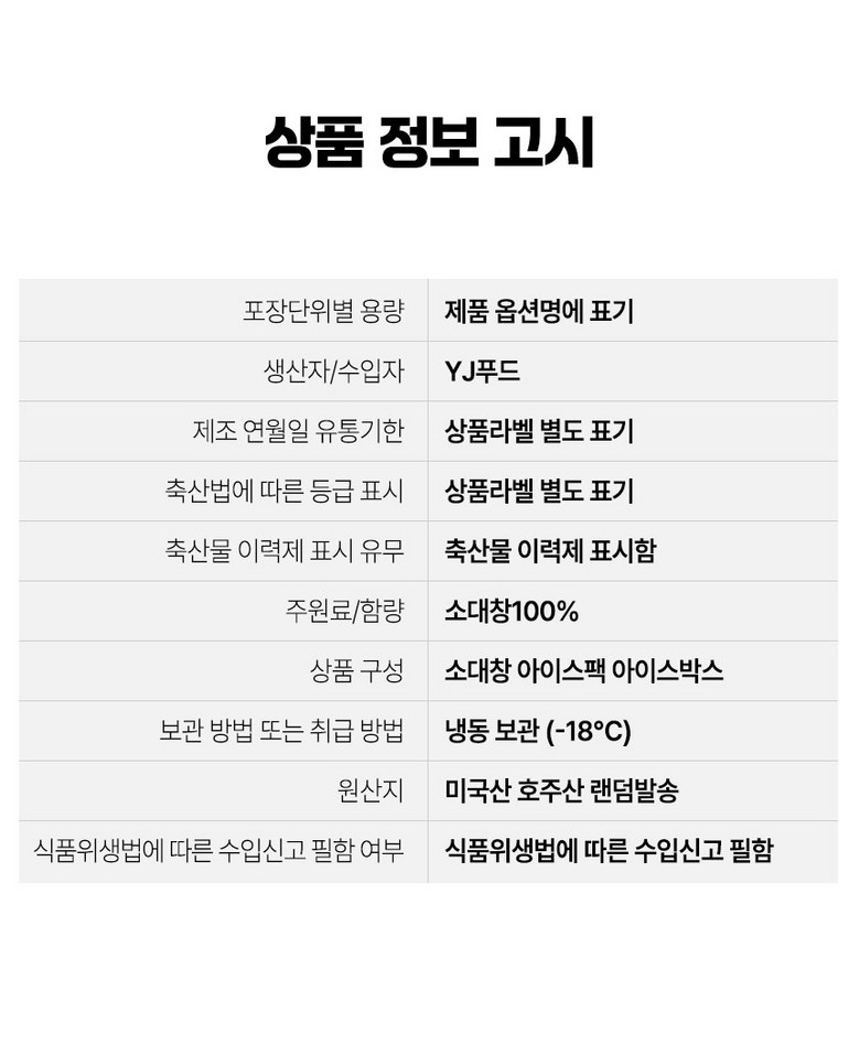 | 생산자(수입자) | (주)신돈축산 | 원산지 | 상품 상세페이지 참조 |