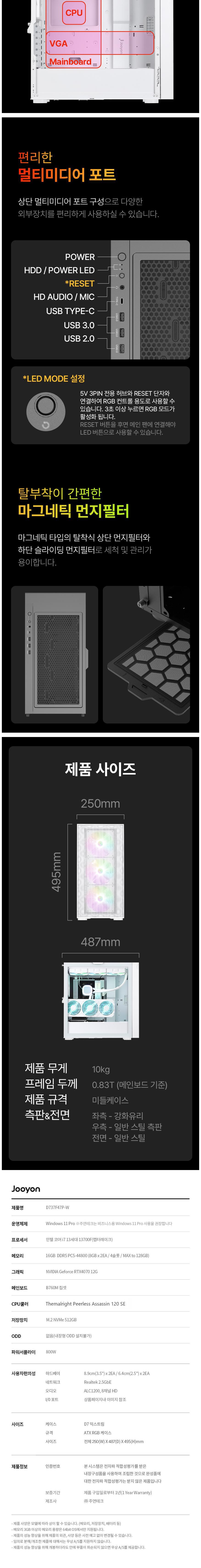 | 품명 및 모델명 | 주연테크 익스트림 인텔 13세대 i7 13700F RTX4070 게이밍 데스크탑 PC 컴퓨터 화이트 D737F47P-W 512GB 16GB WIN11 Pro | KC 인증정보 | 전자파 적합성평가(인증)를 받은 내장구성품을 사용하여 조립한 것으로 완성품에 대한 전자파 적합성평가는 받지 않음 / 전원코드: SU04247-19001 / 전원공급장치: XU100157-20050, R-R-HMM-HP1N800ST-E12S |
