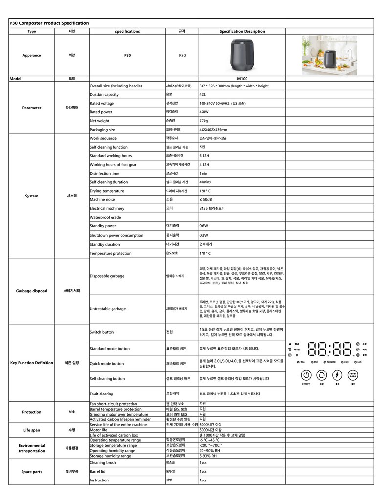 미홀 P30 음식물처리기(한국 플러그)