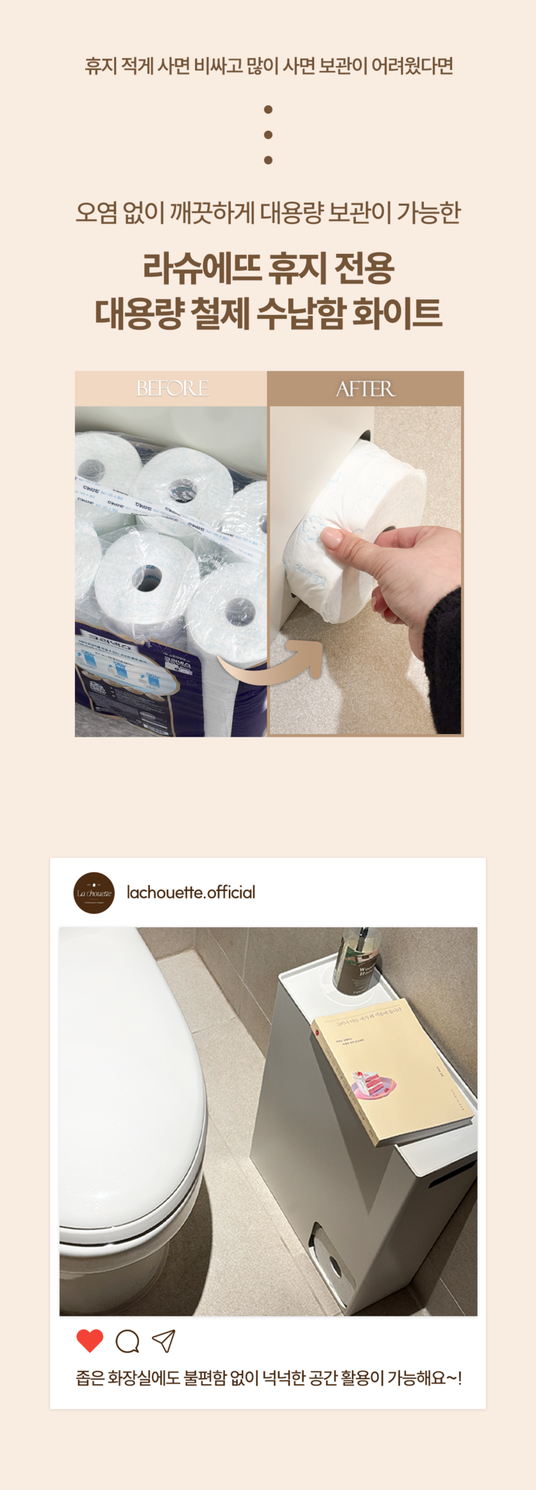 라슈에뜨 두루마리 휴지 전용 수납 슬로프형 자동 배출 편리한 이동 철제 케이스 롤 휴지 보관함