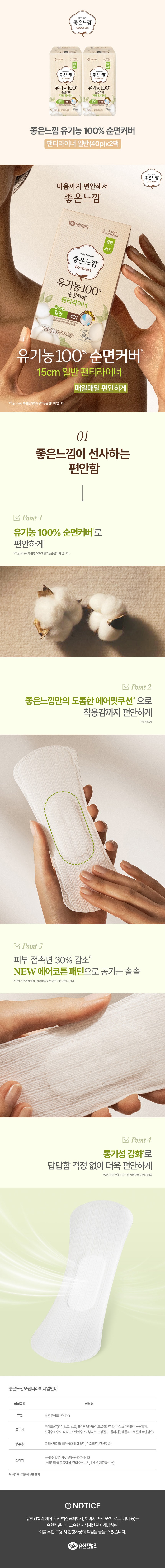 - 생리대커버소재: 유기농 순면