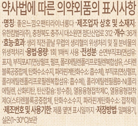 | 품명 및 모델명 | 좋은느낌오팬티라이너롱다 | 인증/허가 사항 | 의약외품 |