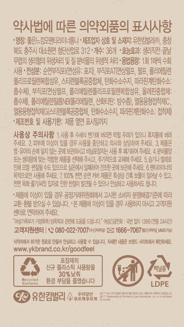 | 품명 및 모델명 | 좋은느낌오팬티라이너롱나 | 인증/허가 사항 | 의약외품 |