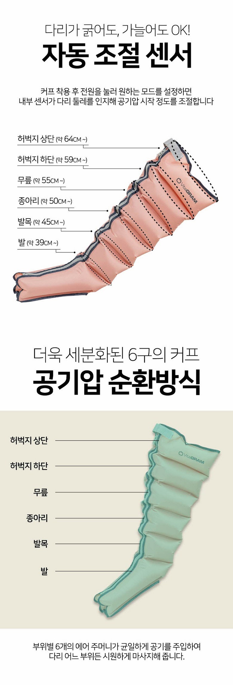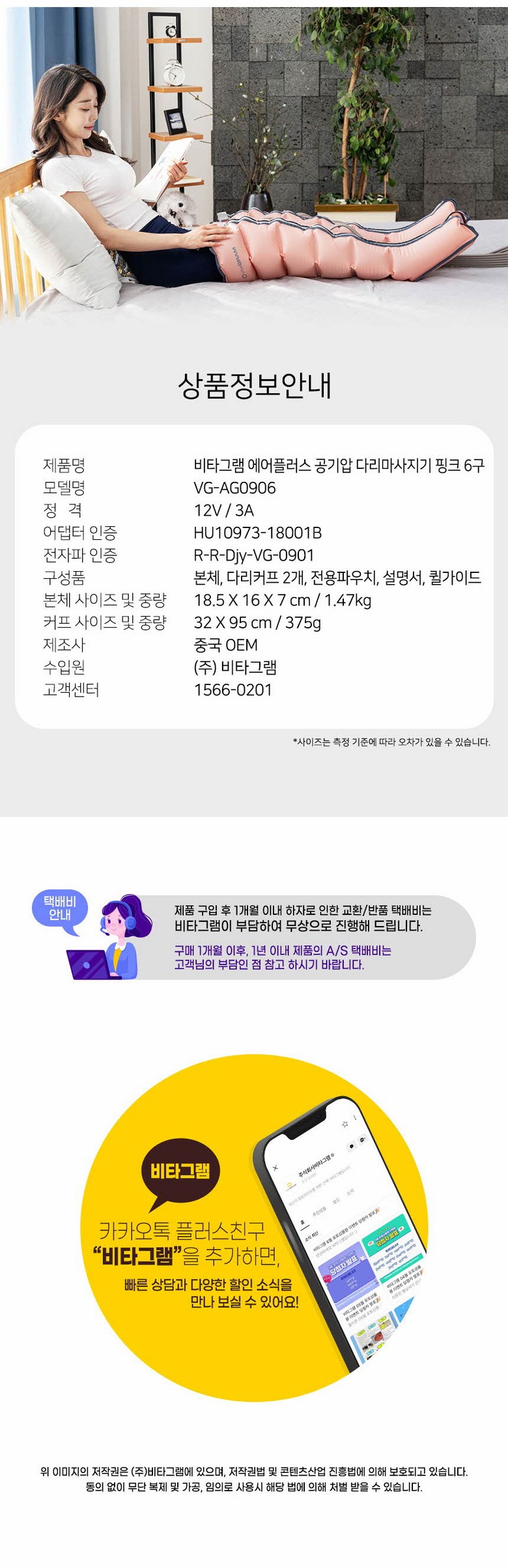 | 품명 및 모델명 | 비타그램 공기압 다리마사지기 에어그라운드 플러스 6방 VG-AG0906 | KC 인증정보 | HU10973-18001 / R-R-Djy-VG-0901 |