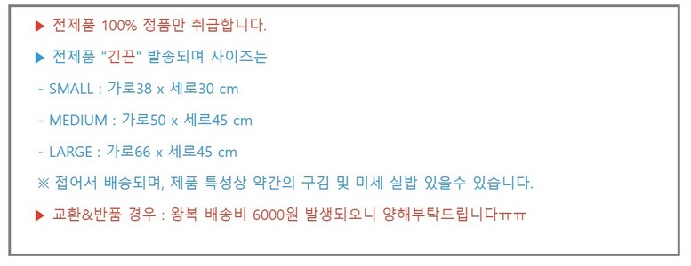 - ㆍ모니터 해상도의 차이로 인해 색상이나 이미지가 실제와 달라, 고객이 단순 변심으로 교환/반품을 무료로 요청하는 경우