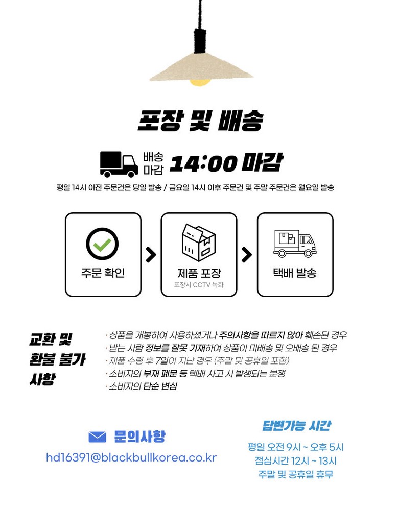 - ㆍ모니터 해상도의 차이로 인해 색상이나 이미지가 실제와 달라, 고객이 단순 변심으로 교환/반품을 무료로 요청하는 경우