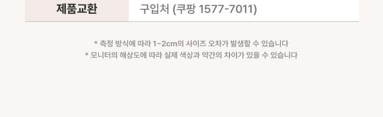 - ㆍ모니터 해상도의 차이로 인해 색상이나 이미지가 실제와 달라, 고객이 단순 변심으로 교환/반품을 무료로 요청하는 경우
