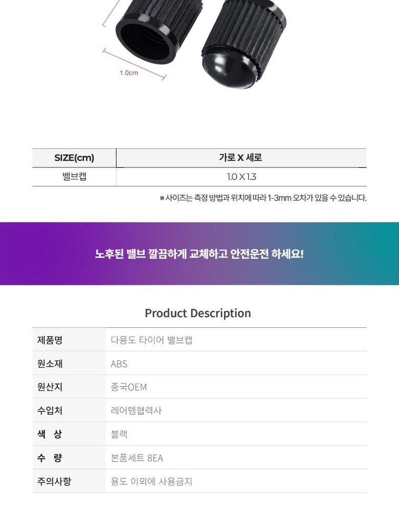 | 품명 및 모델명 | 레어템 다용도 타이어 밸브캡 | 인증/허가 사항 | 상품 상세페이지 참조 |