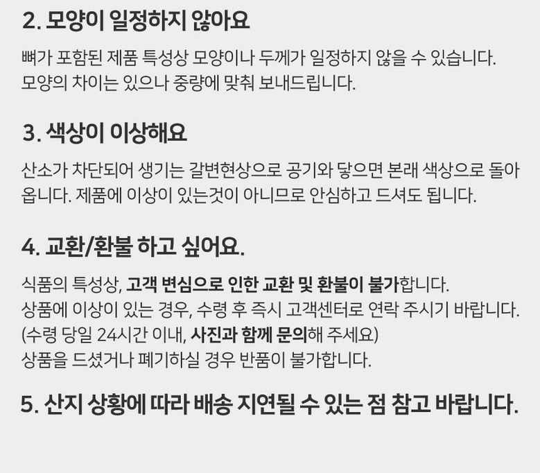 | 배송방법 | 신선/냉장/냉동 | 배송비 | 무료배송 - 도서산간 지역 배송불가 |