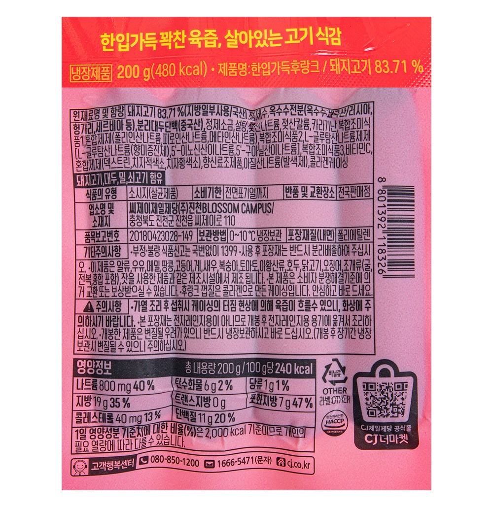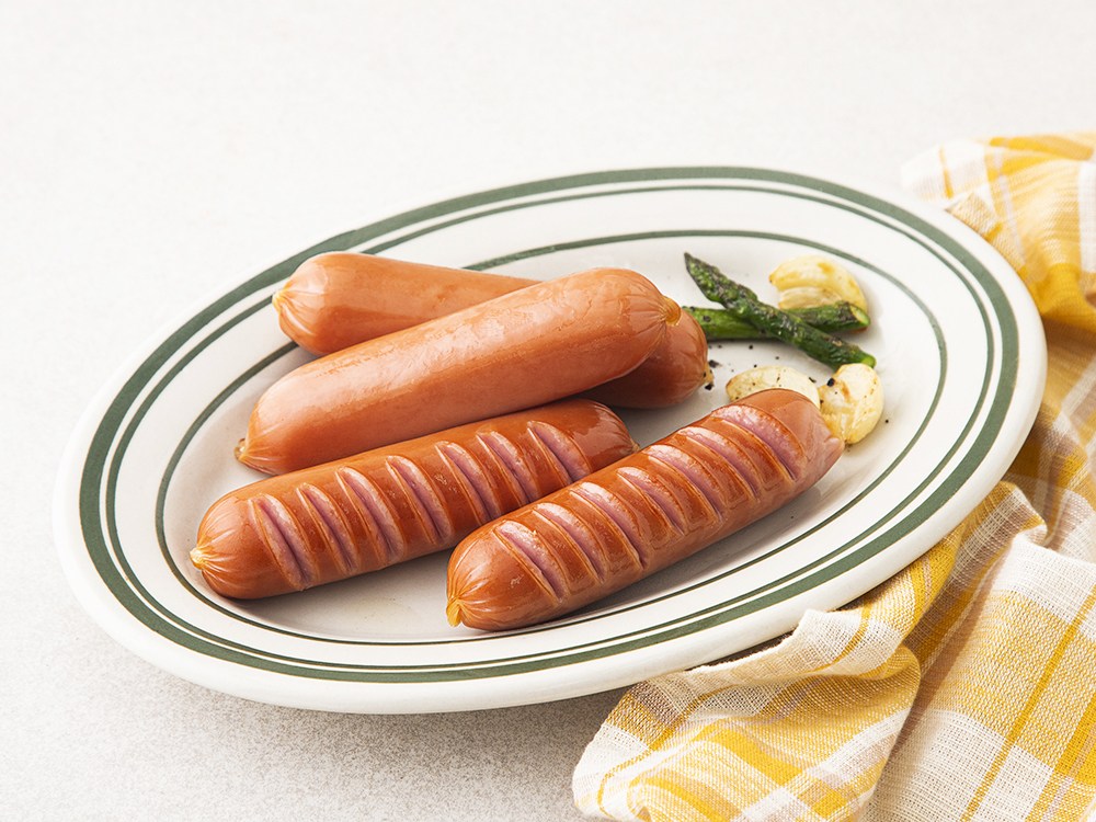 탱글탱글한 후랑크 소시지를 소개할게요. 뽀득뽀득한 식감 사이로 입안 가득 풍기는 고소한 육즙이 일품이랍니다. 두툼한 후랑크 소시지를 잘 구워 한 입 드셔보세요. 노릇하게 구워 밥반찬으로 드셔도 좋고요. 큼직하게 잘라 찌개 요리에 넣어도 짭조름한 감칠맛을 더해준답니다.