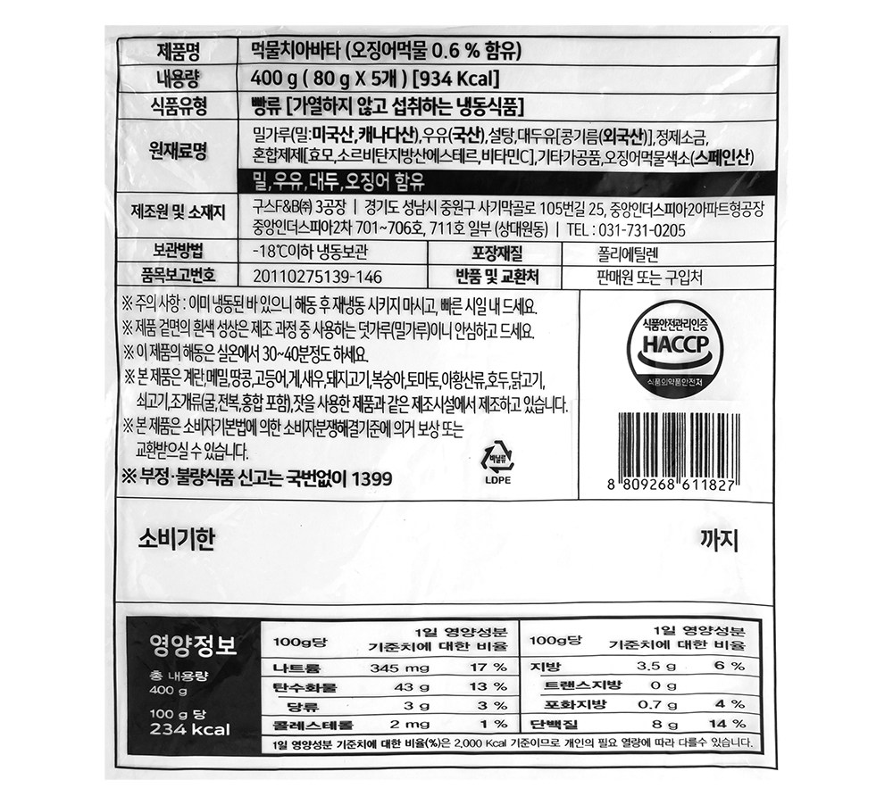 | 포장단위별 내용물의 용량(중량), 수량 | 400g x 2개 | 원재료명 및 함량 | 컨텐츠 참조 |