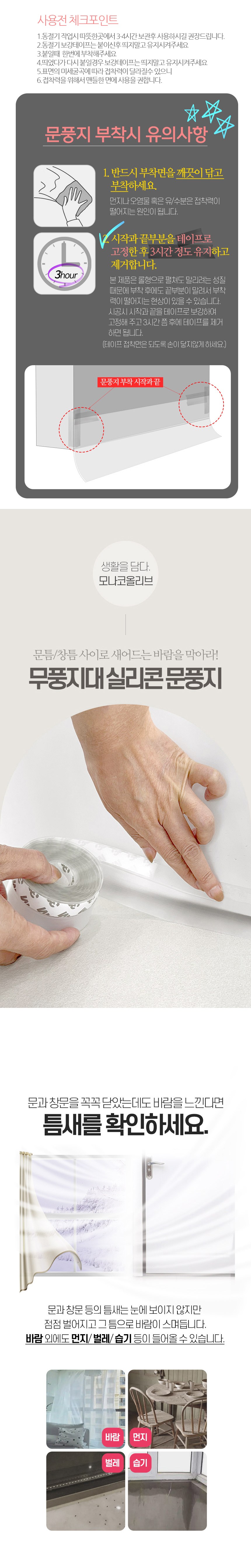 | 품명 및 모델명 | 모나코올리브 외풍차단 틈새차단 실리콘 문풍지 테이프 | 인증/허가 사항 | 해당없음(14세 이상) |