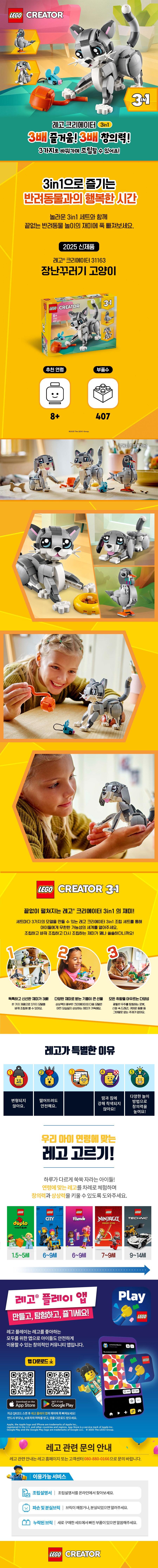 | 품명 및 모델명 | 레고 크리에이터 31163 장난꾸러기 고양이 | KC 인증정보 | CB061R2195-4035 |