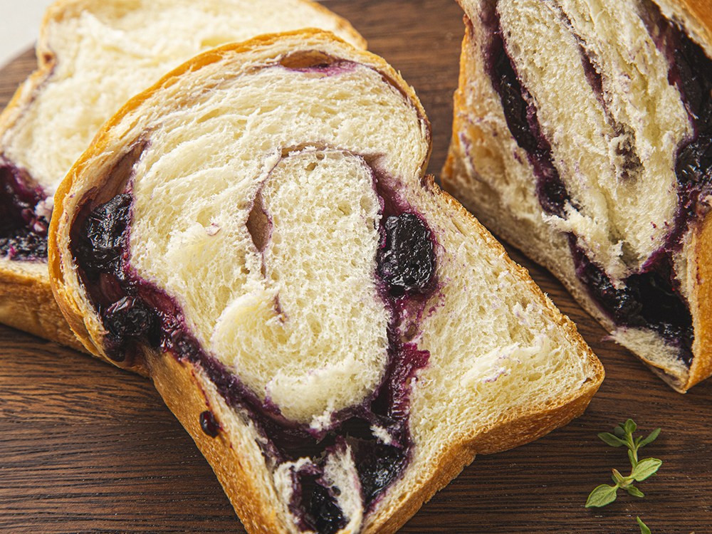 새콤달콤한 블루베리가 들어간 통식빵이에요. 잼이나 스프레드를 준비할 필요 없이 바로 즐겨보세요. 도톰하게 슬라이스해 드시면, 폭신폭신하면서도 쫄깃한 식감이 입안을 가득 채웁니다. 유크림으로 만든 버터를 사용해, 고소한 여운이 혀끝에 기분 좋게 남아요.