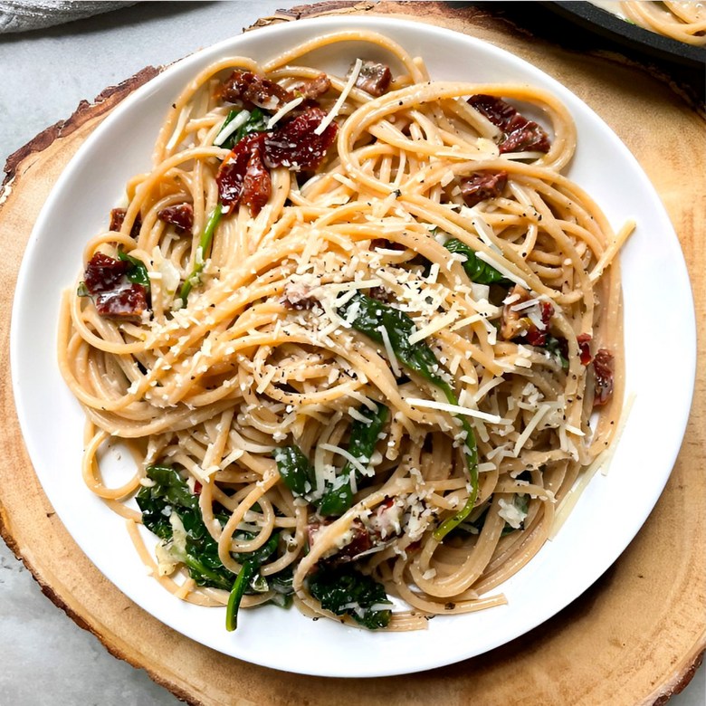 오일 파스타에 썬드라이 토마토를 추가하면 감칠맛이 배가 됩니다.