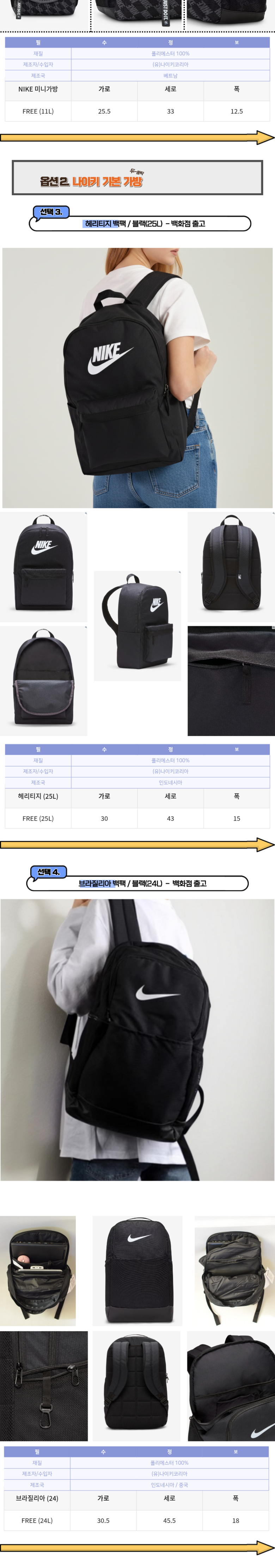 | 종류 | 용품 (가방 백팩) | 소재 | 폴리에스터 100% |