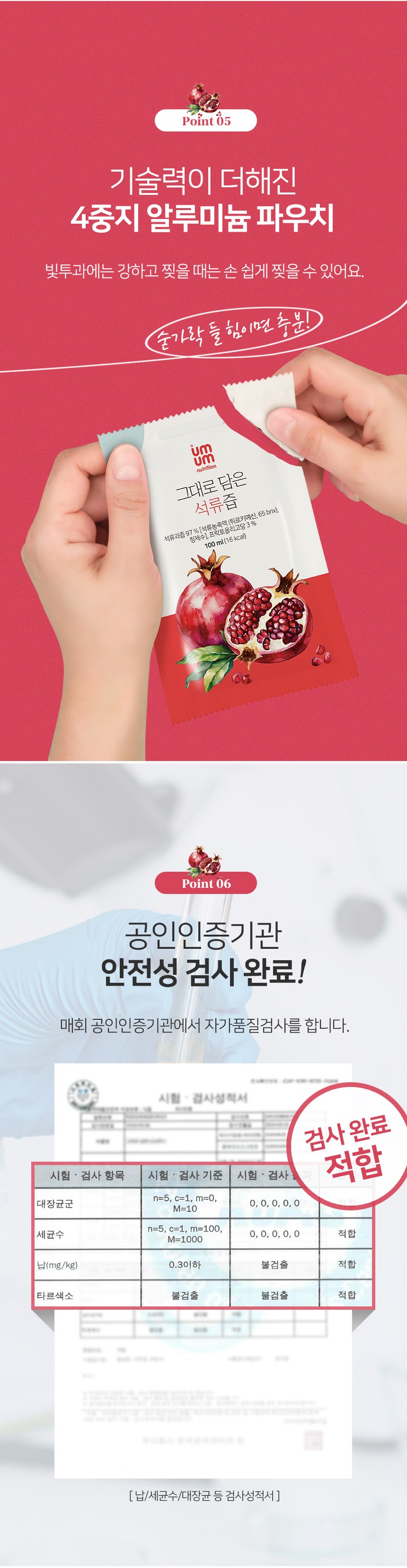 | 포장단위별 내용물의 용량(중량), 수량 | 1포당 100ml | 원재료명 및 함량 | 상품 상세페이지 참조 |
