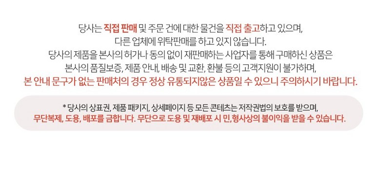 판매 부적격 상품 또는 허위과장광고 및 지식재산권을 침해하는 상품의 경우 신고하여 주시기 바랍니다.