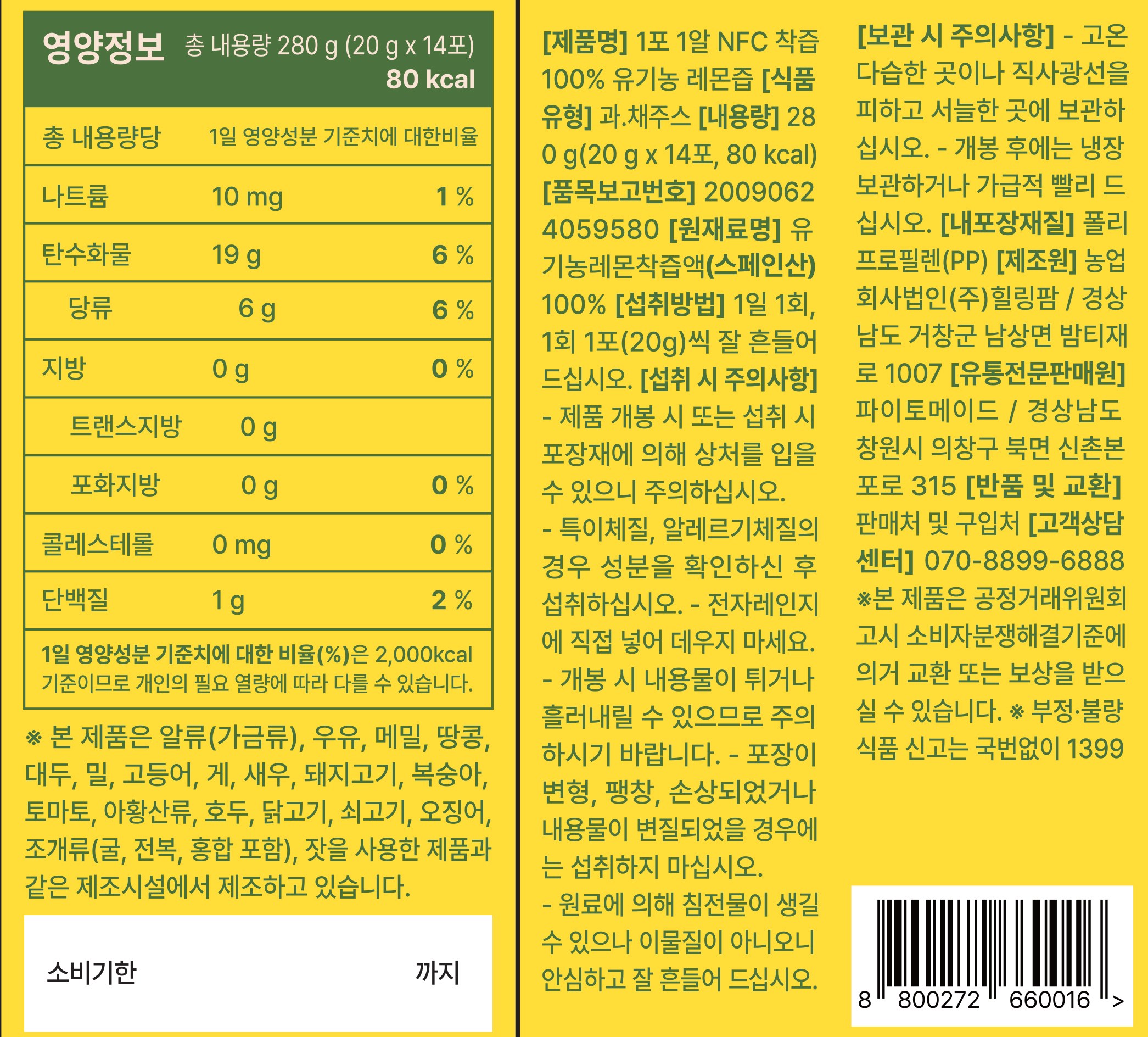 | 생산자 및 소재지 | 컨텐츠 참조 | 제조연월일, 소비기한 또는 품질유지기한 | 소비기한(또는 유통기한) : 2027년 05월 01일 이거나 그 이후인 상품 제조년월일 : 2025년 05월 02일 이후인 제조상품 |